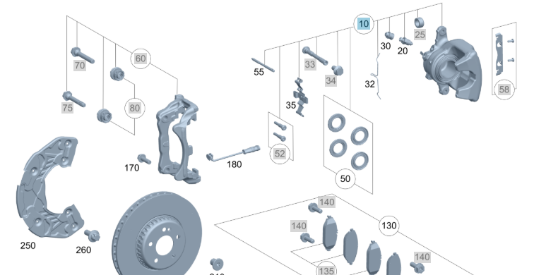 A0004212200 MERCEDES 205 213 253 FIXED CALIPER PARTS SET RIGHT GENUINE NEW