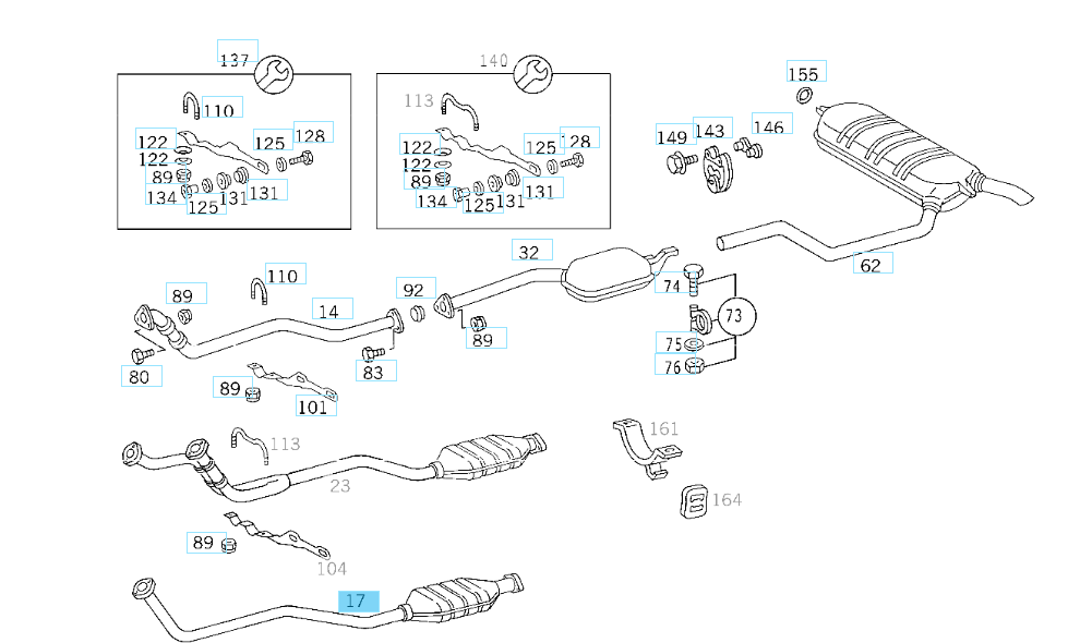 A1244905220 MERCEDES W124 EXHAUST PIPE WITH CATALYTIC CONVERTER GAT 400134 NEW