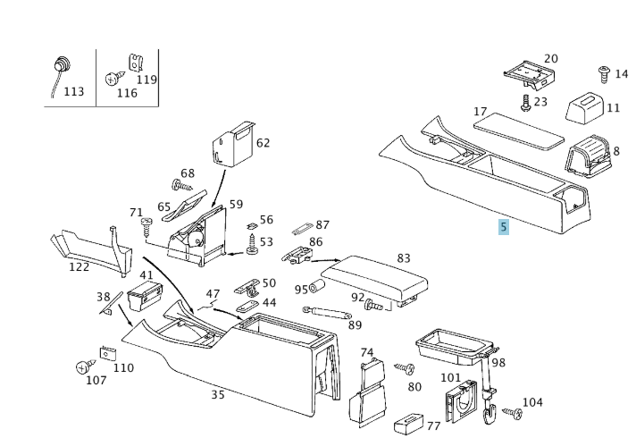 A2026800050 9B12 MERCEDES W202 BLACK CENTRE TUNNEL PANELLING FRONT GENUINE NEW