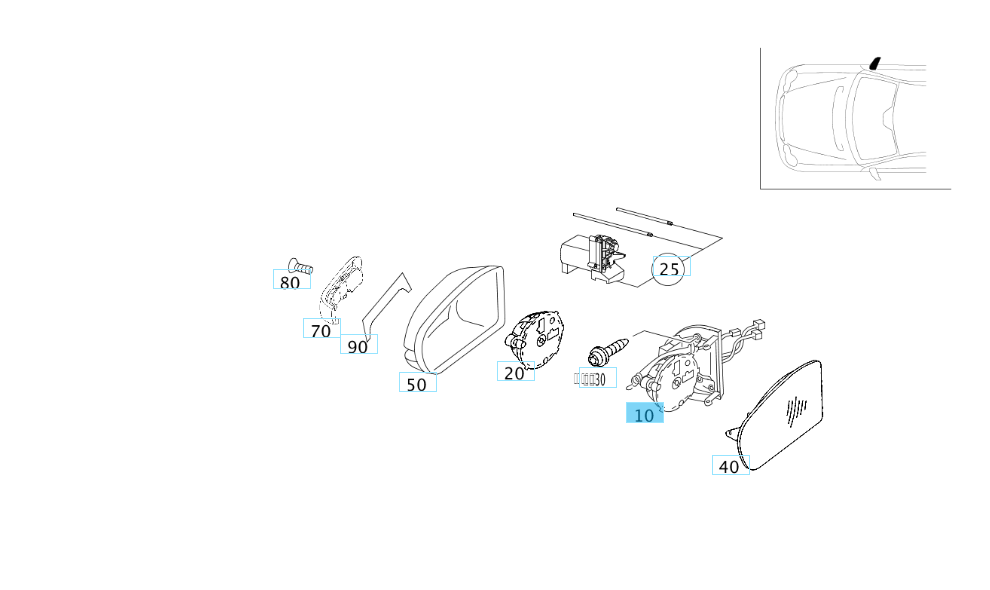A2038107076 MERCEDES 203 FRAME RIGHT OUTSIDE REARVIEW MIRROR GENUINE NEW