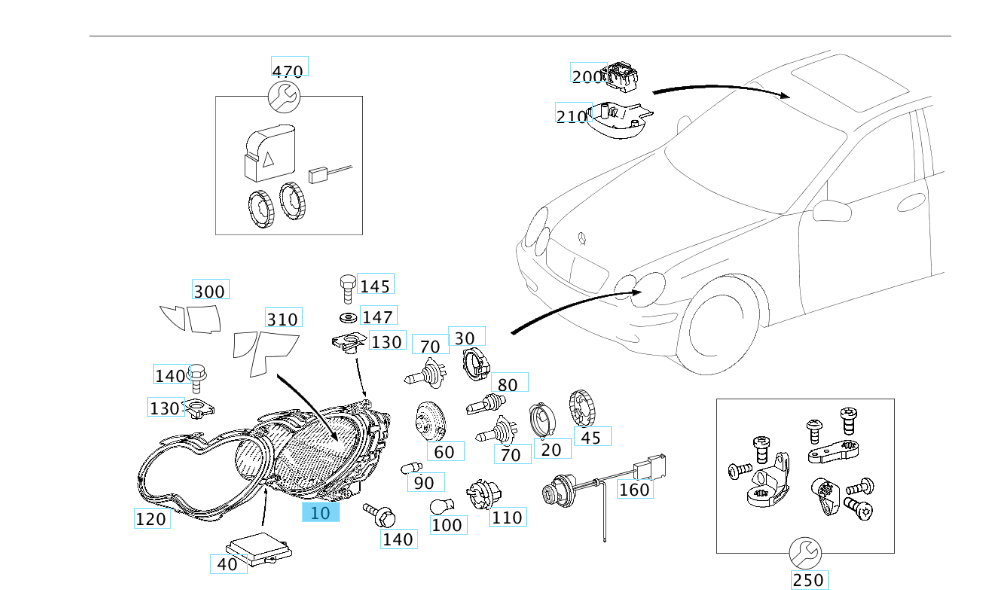 A2038200261 MERCEDES W203 FRONT RIGHT HEADLIGHT GENUINE NEW