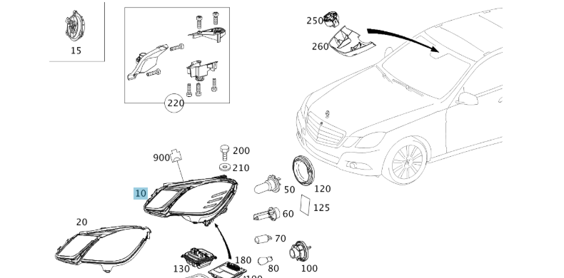 A2128200939 MERCEDES FRONT LEFT HEADLIGHT HELLA 1ZT 011 705-111 NEW