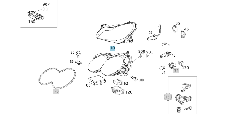 A2308203159 MERCEDES R230 FRONT LEFT LAMP UNIT MAGNETI MARELLI LPM612 NEW