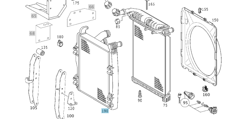 A9405010401 MERCEDES 374 375 950 952 954 INTERCOOLER RADIATOR GENUINE NEW